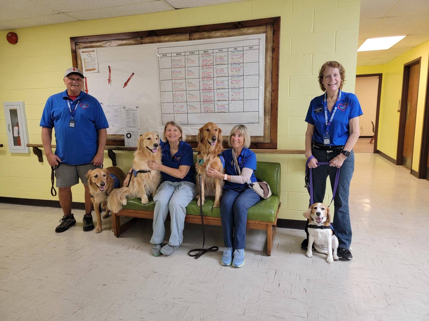 Caring K9s therapy dogs Fenway, Bunker, Willow, and Amie brought comfort and smiles to participants during a recent visit to Key Training Center and Key Elder Care.